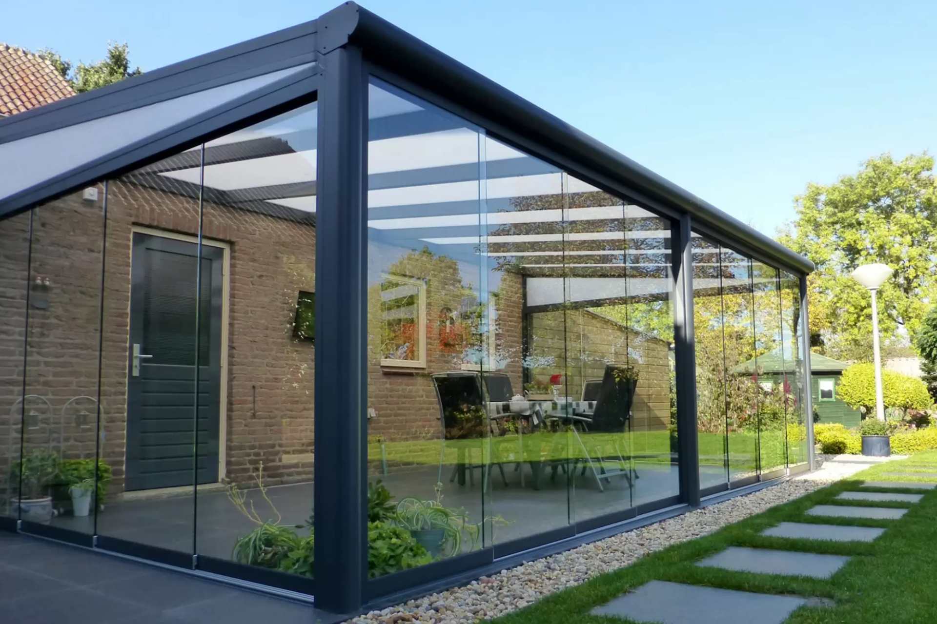 Because of our modular system, the possibilities with the Bosco are endless and suitable for every situation and every style. It’s available in the colours RAL9005, RAL9016, RAL7024 and RAL9001. For the polycarbonate roofing, you can choose from clear, ultra clear, opaque and solar control. Optionally, this veranda can be fitted with various accessories, such as a side gable, sidewall, glass sliding doors or LED lighting. Check our accessories for more information.
