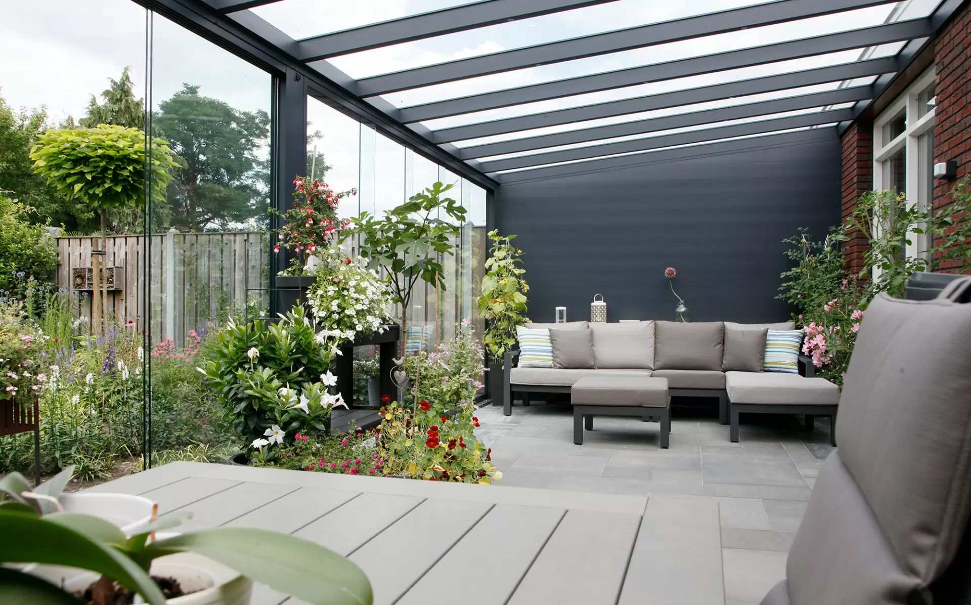 With the Deponti Fiano you can turn your veranda easily into a luxury garden room allowing you to enjoy your garden and terrace all year long. It allows you to create a new place in your home where the indoor and outdoors are merged. The glass panels are available in various height- and width dimensions, can run in three to six rail tracks and have no side frames. Due to this, they offer an free view of your backyard. In addition, a Fiano glass sliding door system also protects against rain and cold. This allows you to enjoy the ultimate outdoor feeling, even in bad weather. On top of this they also offer some sound reduction.